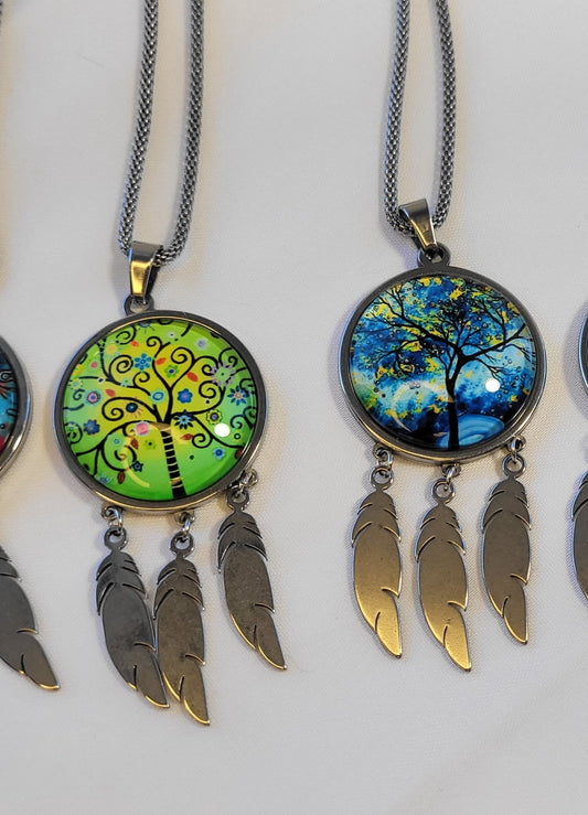 Beautiful Tree of Life Glass Dome Cabochon Necklace