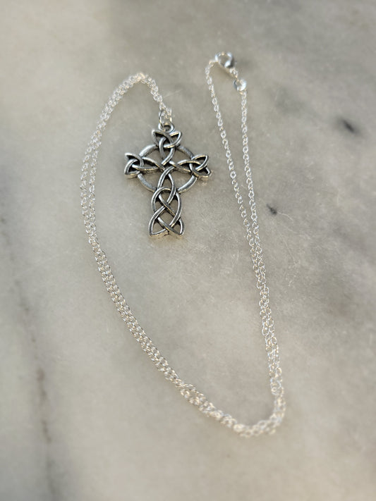 Irish Celtic Cross on silver chain necklace