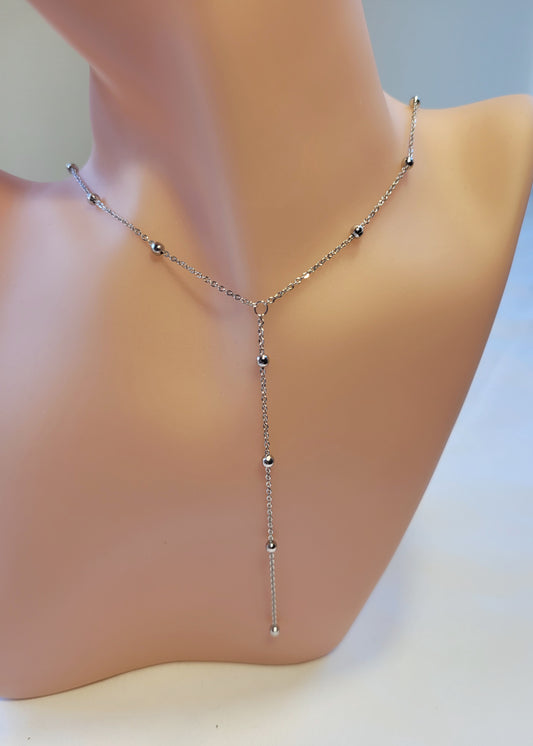 Silver Round Bead Tassel Necklace