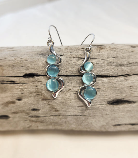 Sliver Curved Blue Moonstone Earring