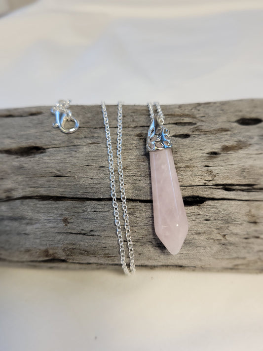 Rose quartz crystal & silver chain necklace