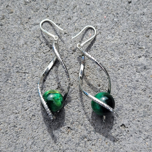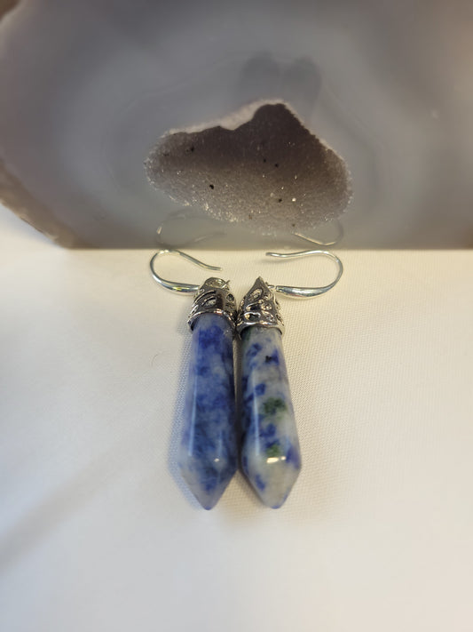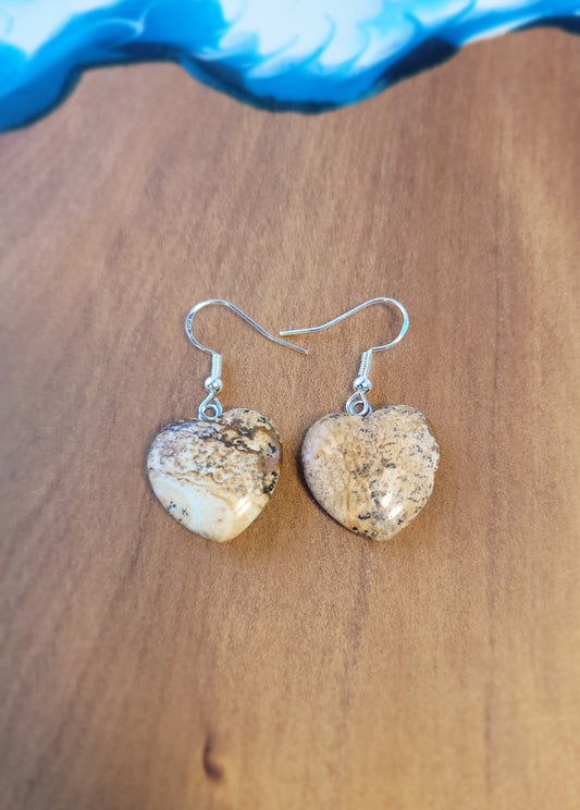 Dalmatian Jasper Heart Crystal & Silver Earrings