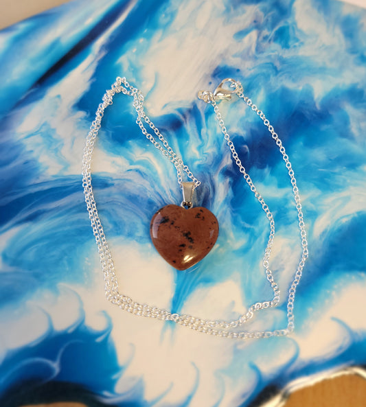 Golden Swan Jasper Heart crystal & silver chain necklace