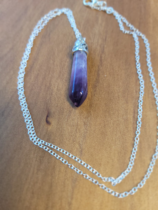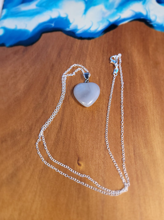 Grey Smokey Quartz Heart crystal & silver chain necklace
