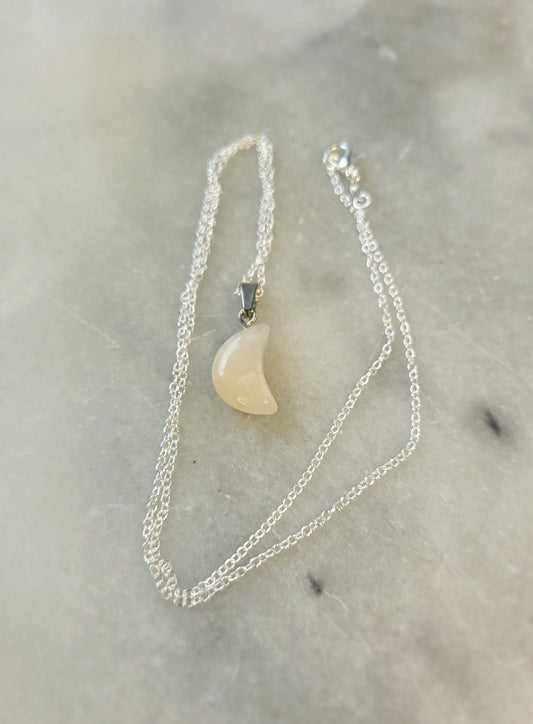Yellow Aventurine Quarter Moon crystal & silver chain necklace