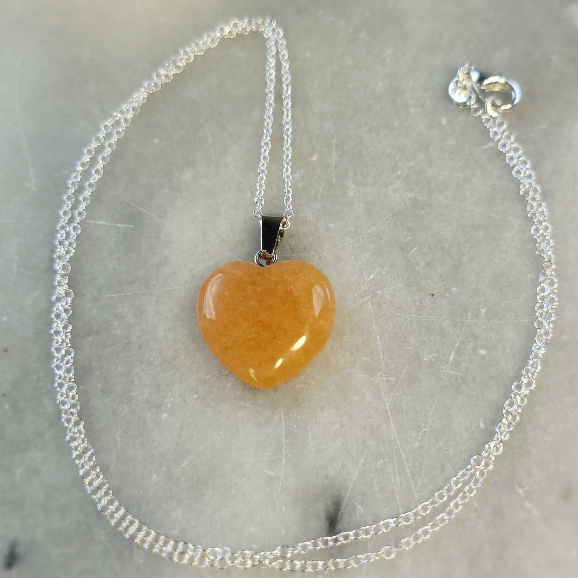 Crafted with care, the pendant features a heart-shaped yellow/apricot aventurine gemstone that is known for its soothing and calming energy. The pendant is delicately suspended from a sterling silver chain, creating a harmonious and stylish design.