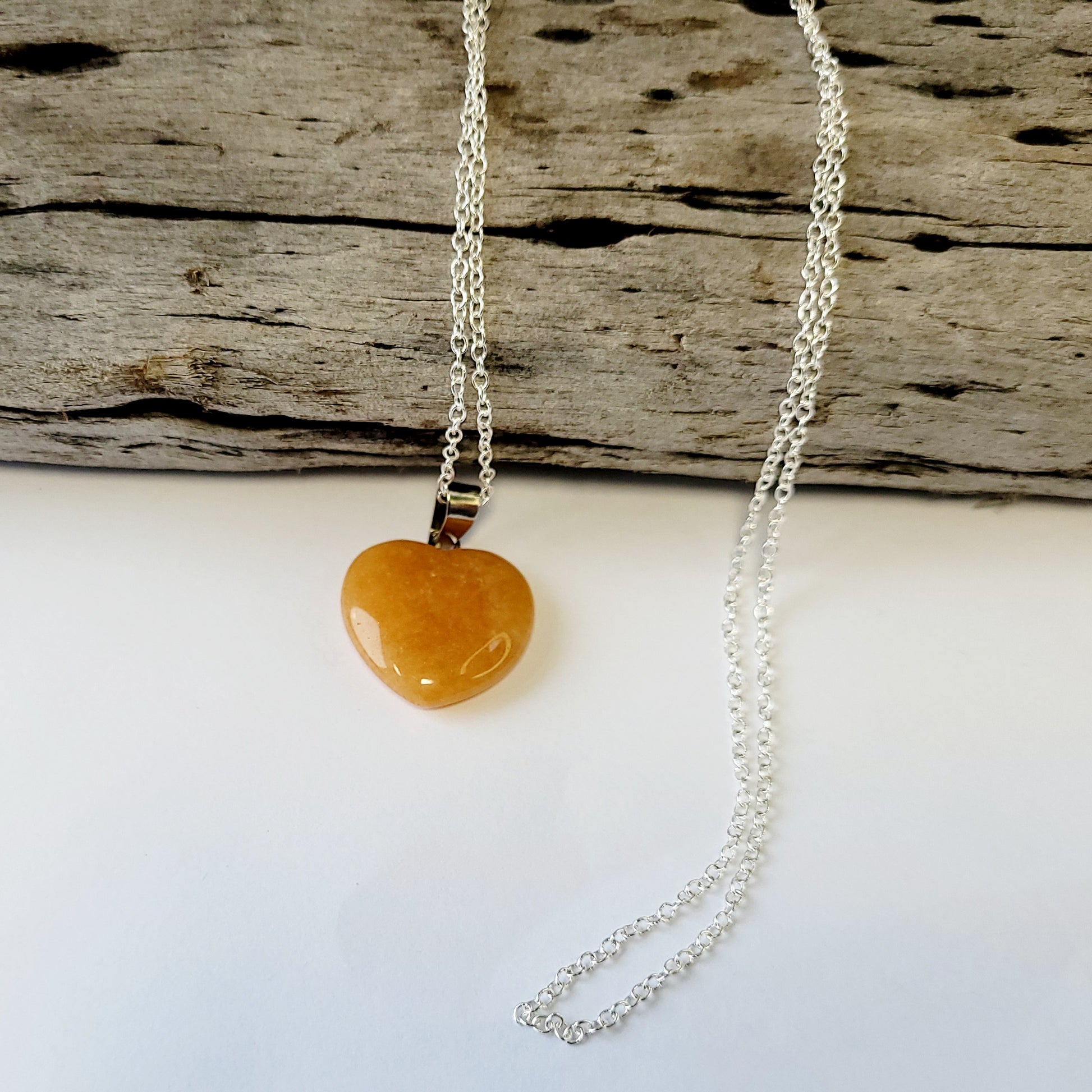Shop with confidence and experience the joy of wearing natural crystal gemstone jewelry. Embrace the beauty of our Natural Yellow/Apricot Aventurine Heart pendant with sterling silver chain necklace and elevate your style to new heights.