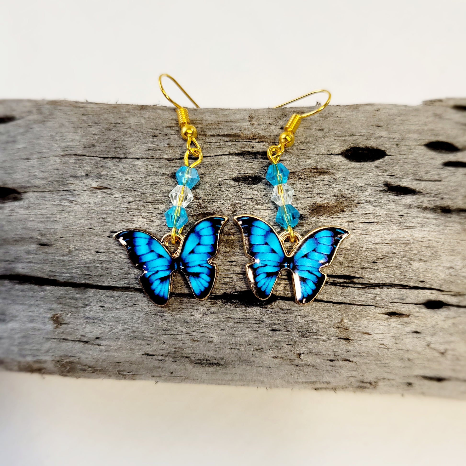 Introducing our stunning Blue Butterfly and Crystal Bead Earrings, a beautiful addition to your jewellery collection.