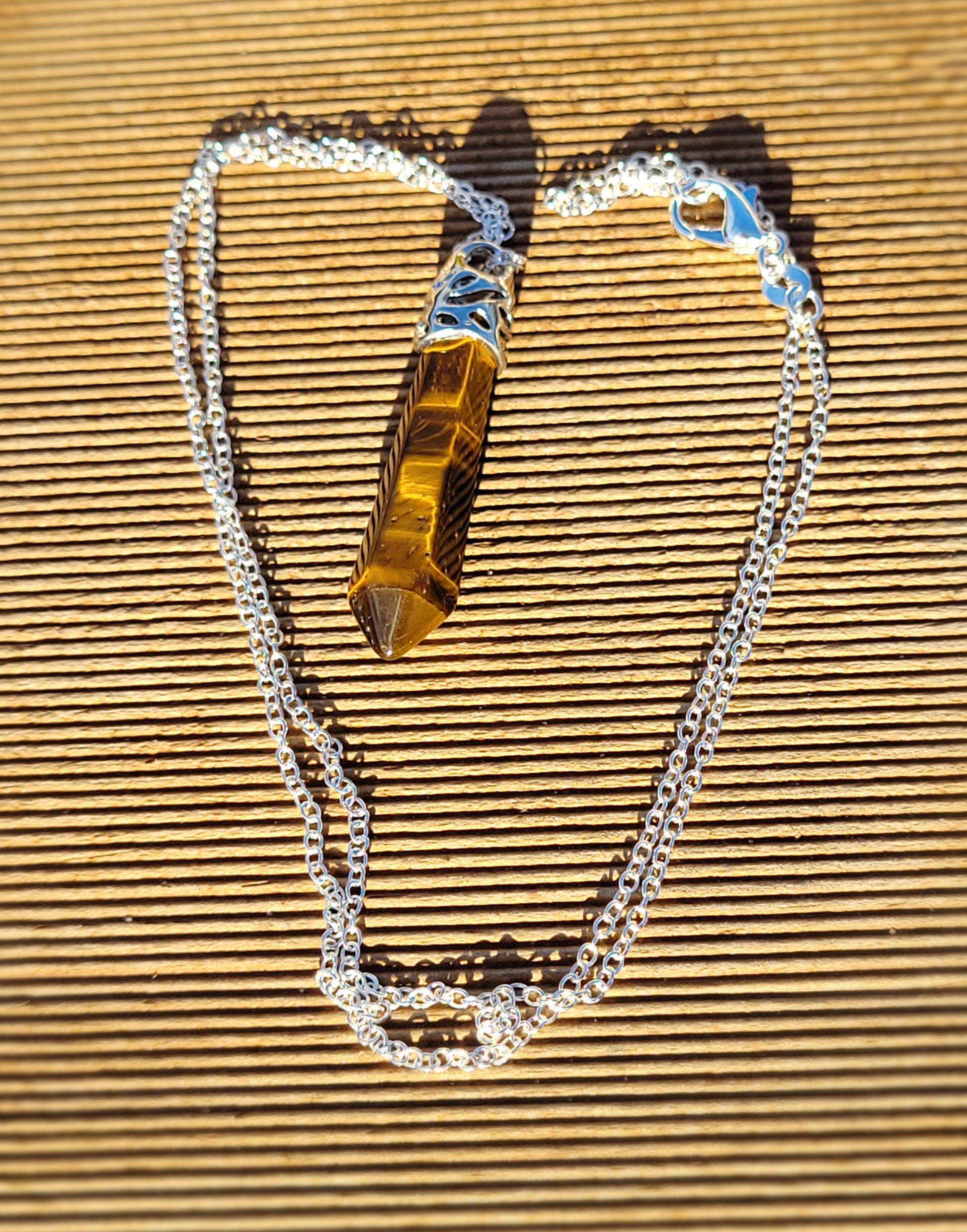 Introducing our stunning Natural Tiger Eye Pendant with Sterling Silver Chain Necklace, a captivating piece that combines the beauty of nature with the elegance of sterling silver.
