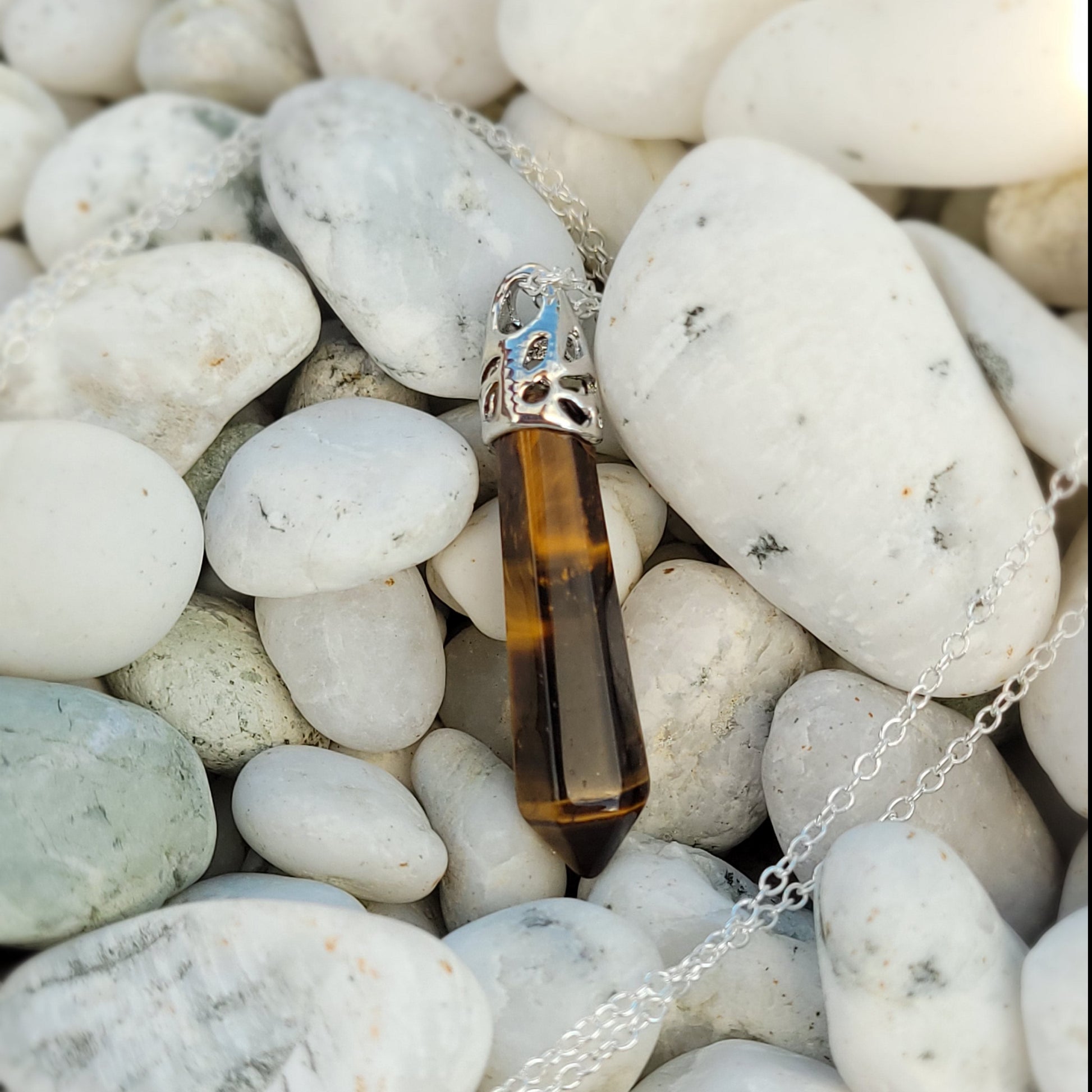 Embrace the magic of crystals and add a touch of boho beauty to your ensemble with our Natural Tiger Eye Pendant with Sterling Silver Chain Necklace. Shop now and let your inner gypsy shine.