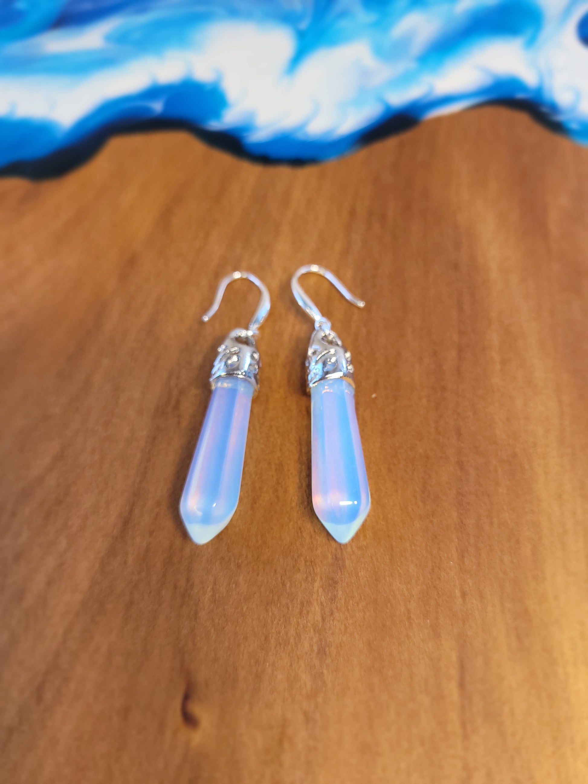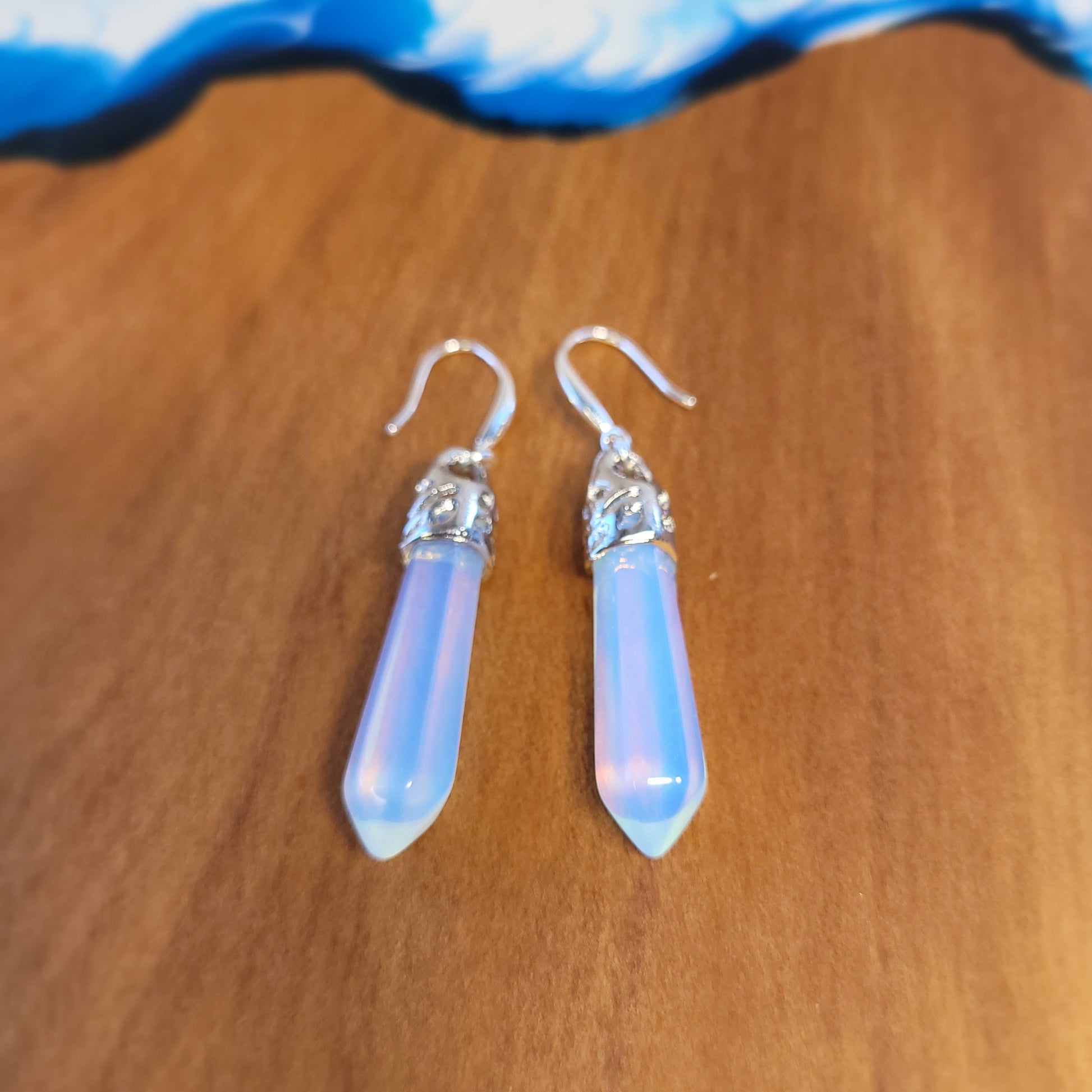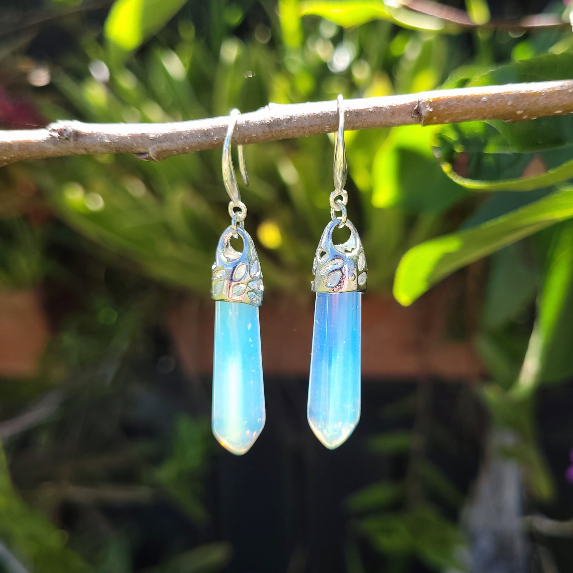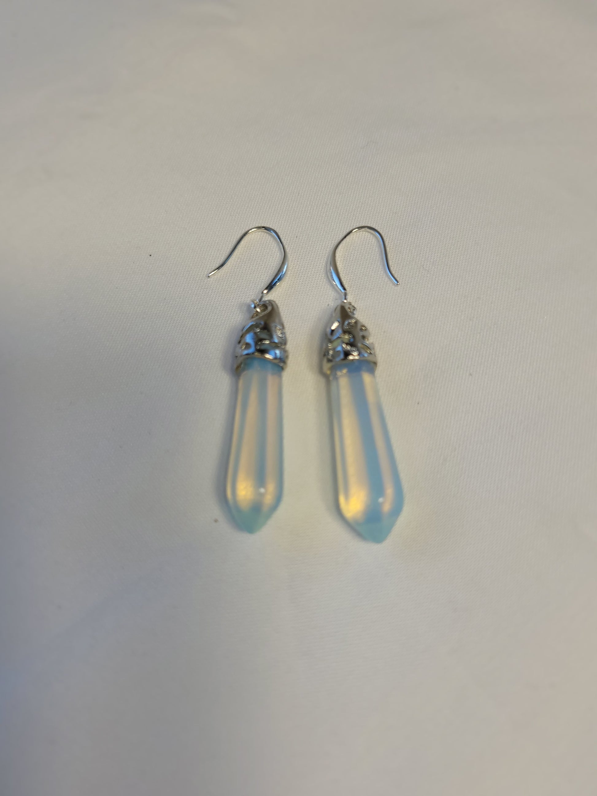 Discover the enchantment of these stunning earrings, showcasing the mesmerizing beauty of Moonstone Opalite. Each earring features a captivating Moonstone pendant elegantly crafted in sterling silver, symbolizing inner clarity, cyclical change, and a profound connection to the feminine energy.