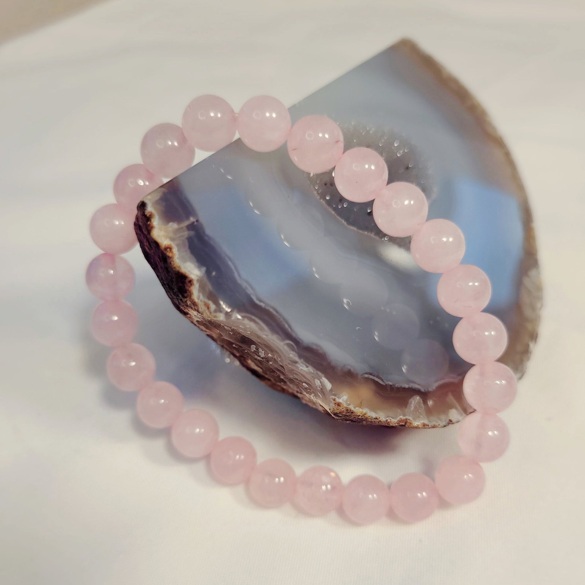 Introducing our Rose Quartz Bracelet featuring 8mm beads, comfortably measuring 19cm around on an elastic cord for effortless adjustability.