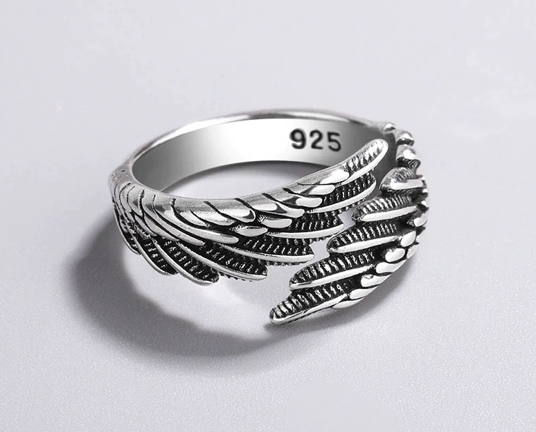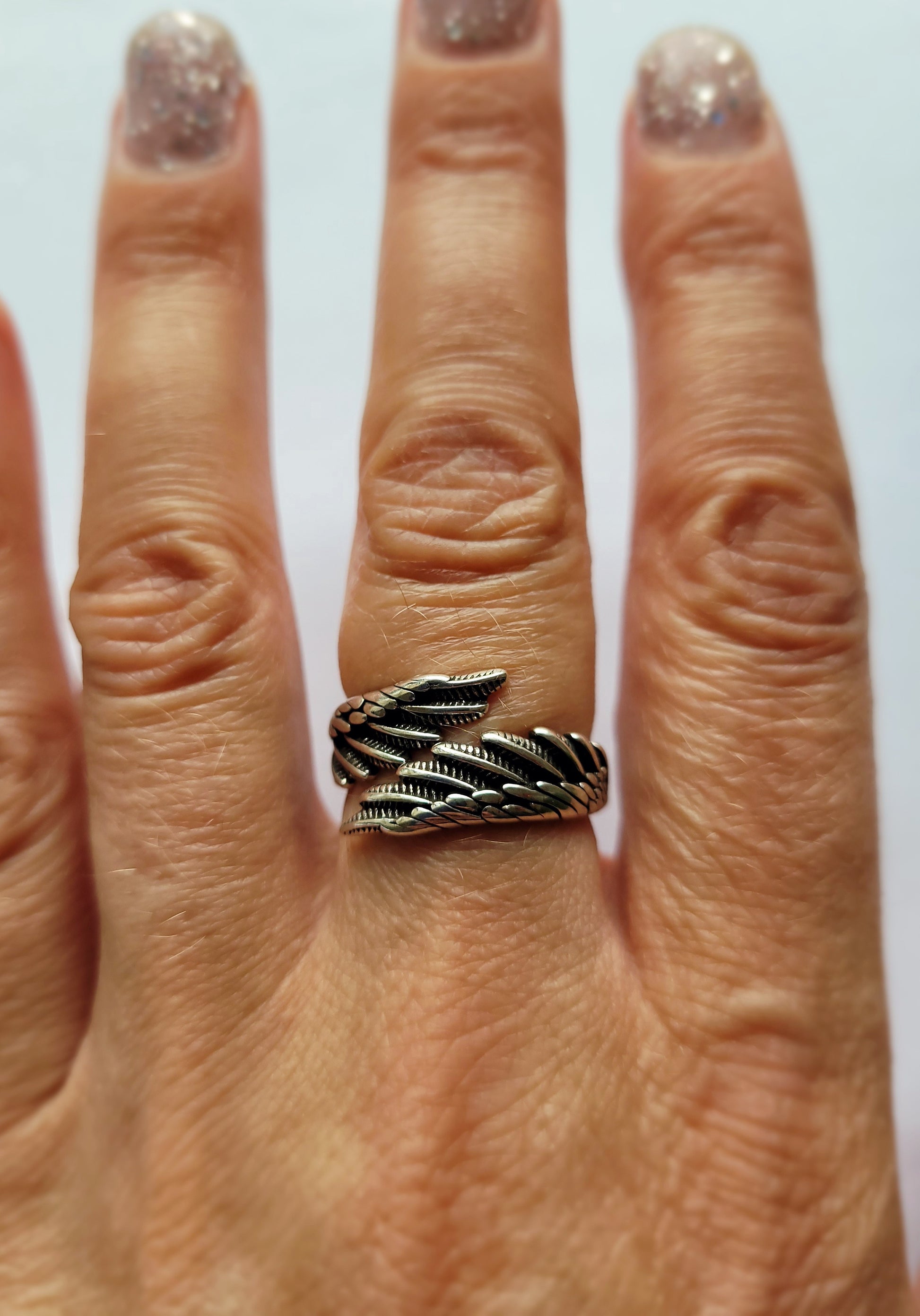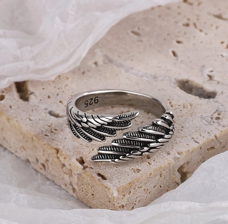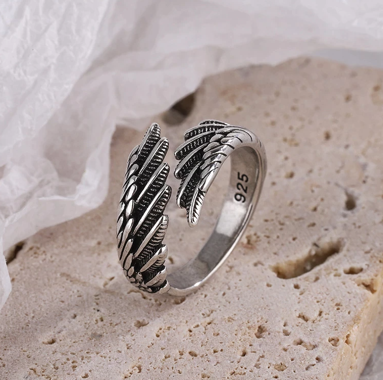 Crafted with precision from sterling silver, this ring boasts a beautiful angel wing design that exudes grace and sophistication. The inside band is stamped with the 925 mark, ensuring its authenticity and quality.