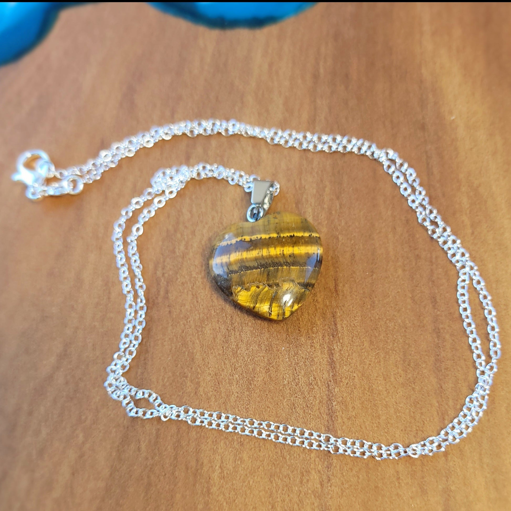 Introducing our exquisite Natural Tiger Eye Heart Pendant with a sterling silver chain necklace, a stunning piece that combines elegance with the natural beauty of gemstones.